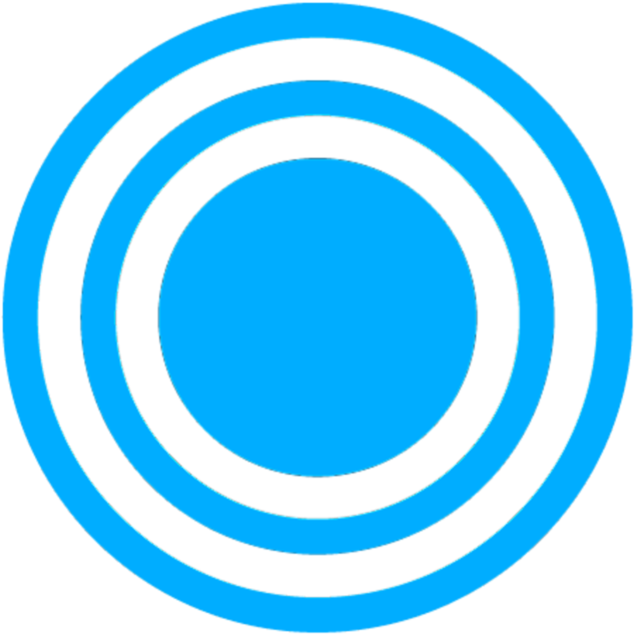 Konzentrische cyanfarbene Kreise auf schwarzem Hintergrund. Eine zentrale hellblaue Scheibe wird von zwei weiteren Ringen umgeben – ein Bullseye-ähnliches Symbol.