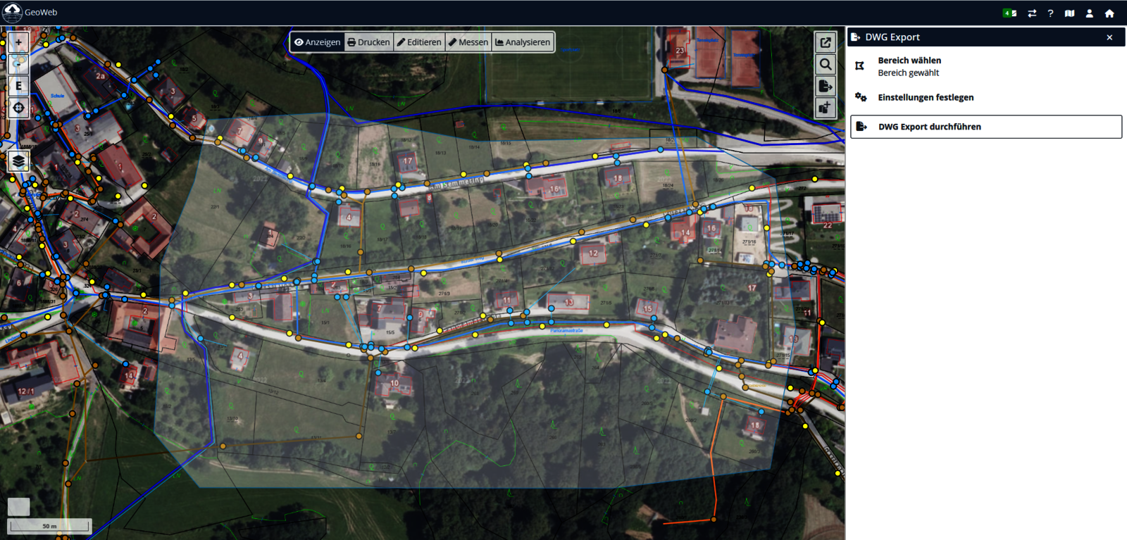 Der Export erfolgt bequem über die Karte, wobei Sie den gewünschten Bereich flexibel selbst festlegen können. So sparen Sie sich Zwischenschritte und erhalten genau die Daten, die Sie benötigen.