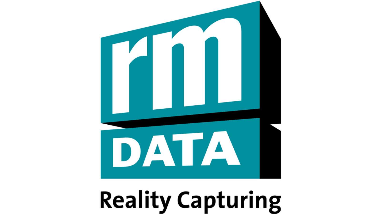 Logo des Unternehmens rm DATA: zwei türkisfarbene Quadrate mit den weißen Texten 'rm' oben und 'DATA' unten; darunter der Slogan 'Reality Capturing'.