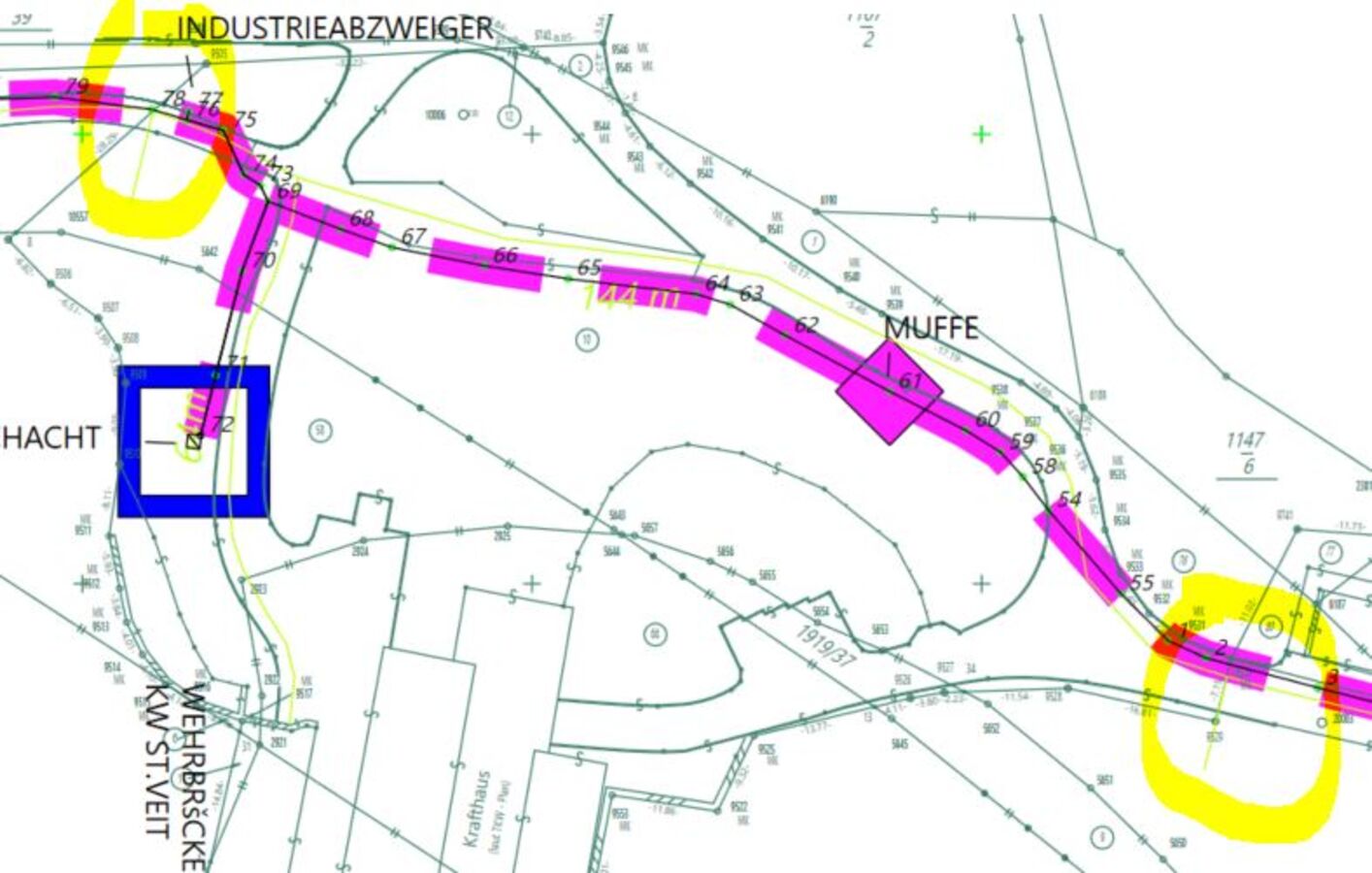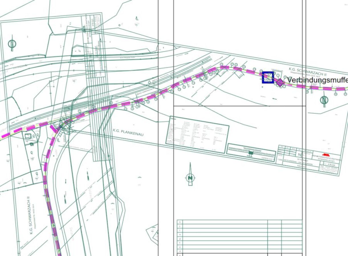 Dabei wurden auf Basis unterschiedlicher Planunterlagen LWL-Kabel mit Einbauten im Bereich Salzburg/Kaprun digitalisiert. Die Plangrundlagen wurden vom VERBUND als Scans (PDF) und als AutoCAD-DWG-Dateien zu Verfügung gestellt.