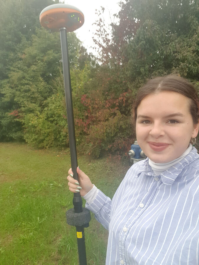 Bilder links: Rebekka Rath bei Feldaufnahmen, Screenshot eines Geodokuments, das sie in ihrer Vergleichsanalyse für kommunale Einrichtungen aufbereitet hat.