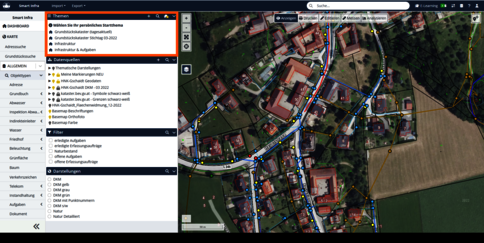 Die Version 2025.1 bietet Anwendern einen übersichtlichen Zugang zu den sieben Kernbereichen eines kommunalen Informationssystems: Allgemein, Grundbuch, Abwasser, Wasser, Verkehr, Friedhof und Grünraum. Mit den logisch strukturierten Menübereichen haben sie einen schnellen und intuitiv erfassbaren Zugriff auf relevante Informationen, wodurch Arbeitsabläufe noch effizienter und benutzerfreundlicher gestaltet werden.