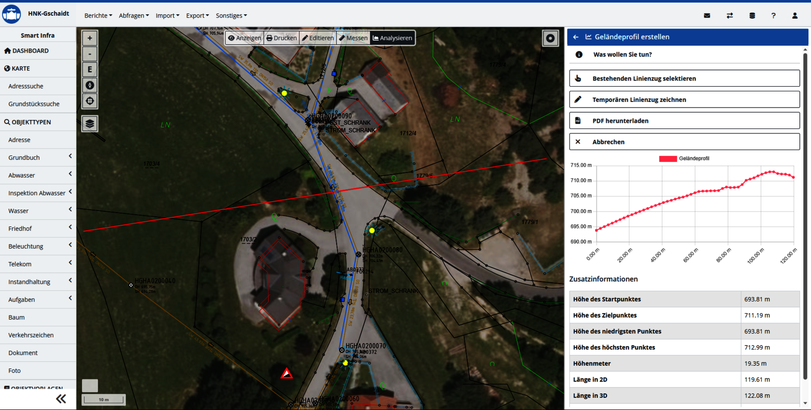 Sofern keine Befliegung durchgeführt wurde, stellt Ihnen in Österreich das Bundesamt für Eich- und Vermessungswesen Geländemodelle zur Verfügung, die Sie mit der neuen Version von rmDATA Smart Infra direkt für Ihre Geländeanalysen nutzen können. Die Abfrage von Höhenwerten zu beliebigen Positionen oder die automatische Ableitung von Geländeprofilen liefern wichtige Informationen für die Planung und Gestaltung von Infrastrukturprojekten im Hoch- und Tiefbau.