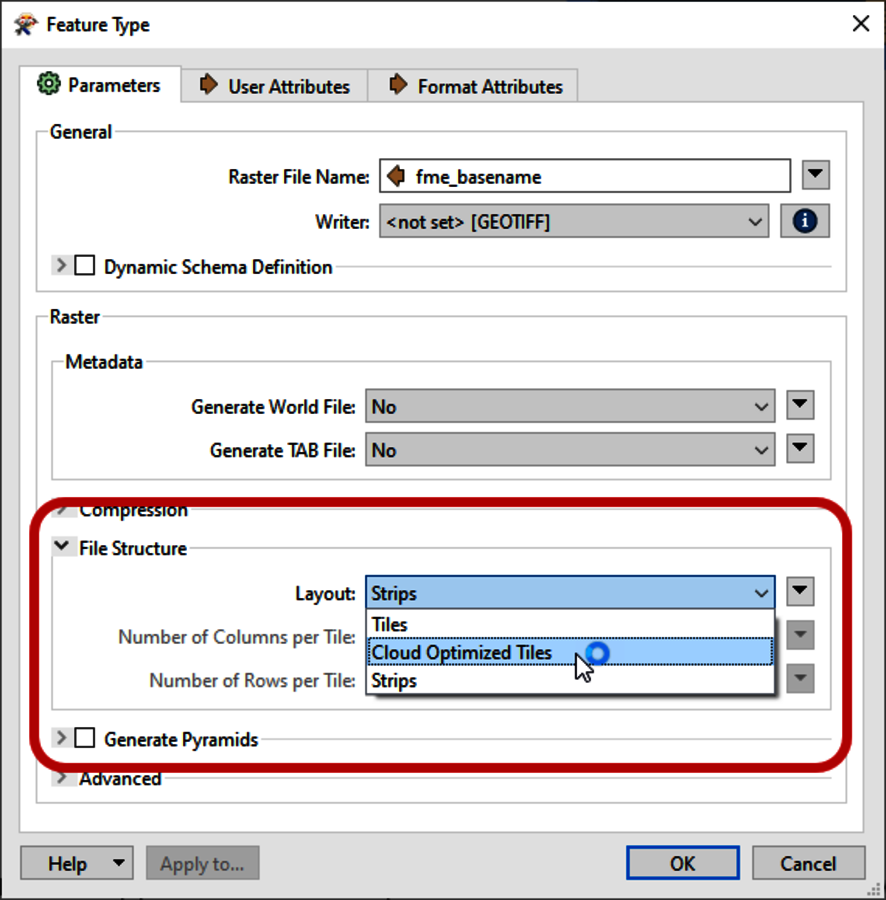 Legen Sie den Dateistrukturparameter fest, um Cloud-optimierte Kacheln zu erhalten.