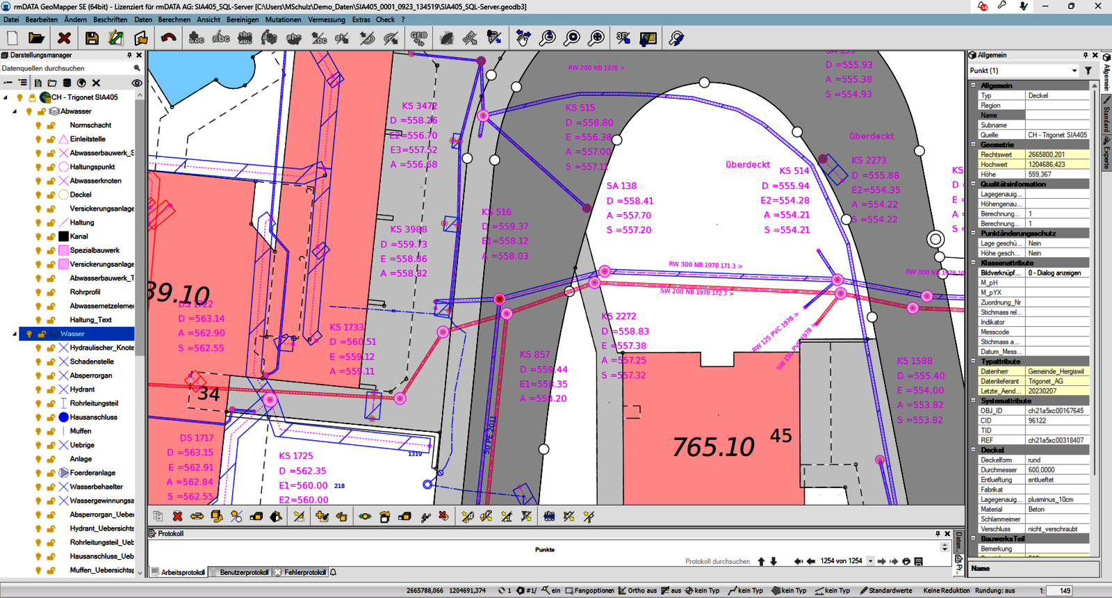 Leitungskataster nach SIA 405 mit rmDATA Geomatik führen