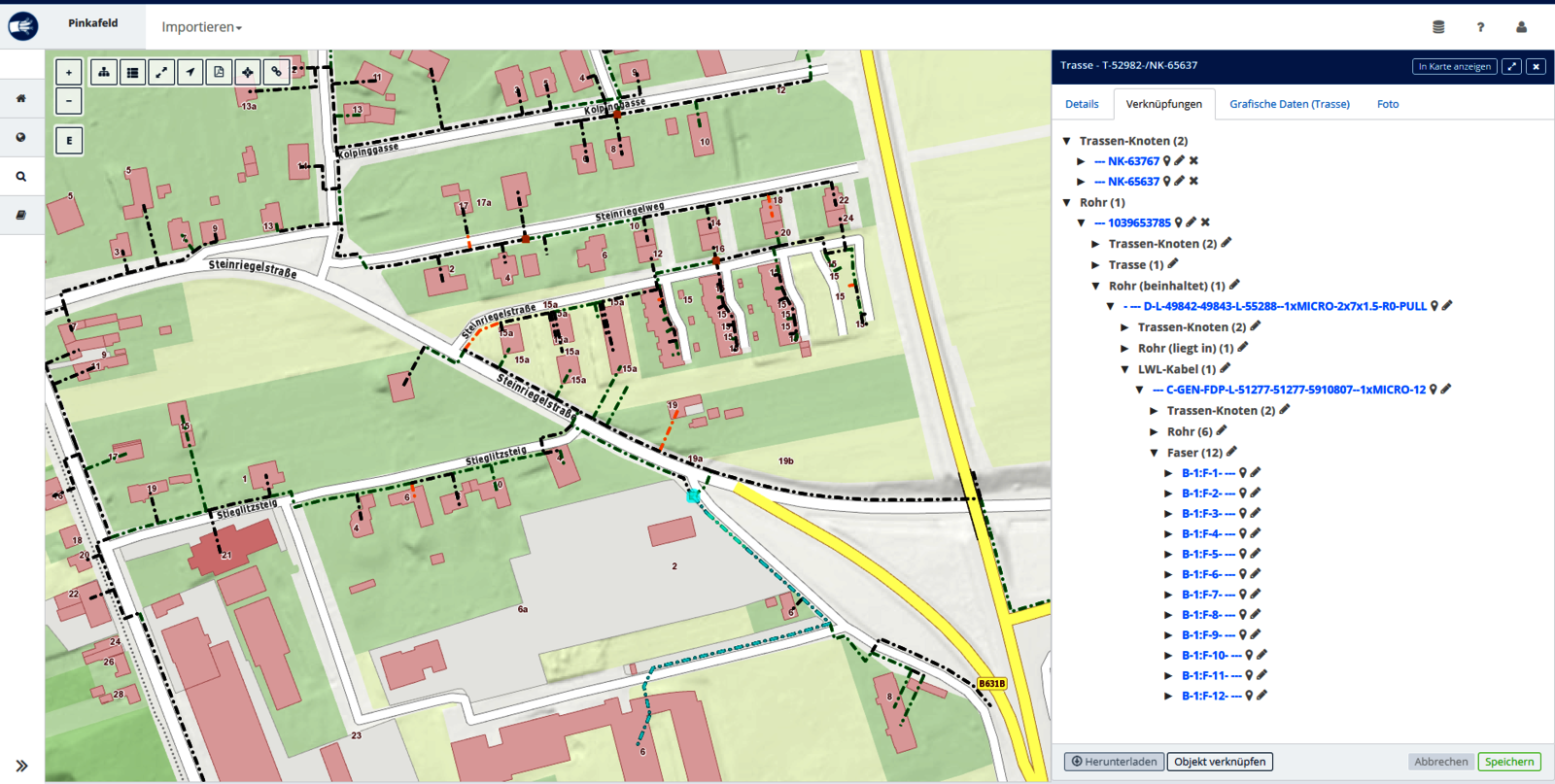Ihre Daten zum Telekommunikationsnetz können einfach und flexibel mit weiteren Informationen wie beispielsweise Grundstücks-Informationen, Grundeigentümer-Daten, Adress-Daten, Luftbilder, CAD- und GIS-Daten oder Geodaten-Dienste der Länder angereichert werden.
