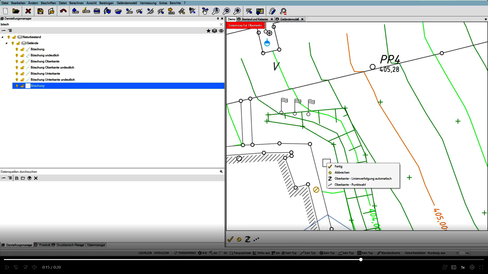 Geomatik 2025.3 also sets new standards when designing slopes: select the top and bottom edges - and the surface is created automatically.