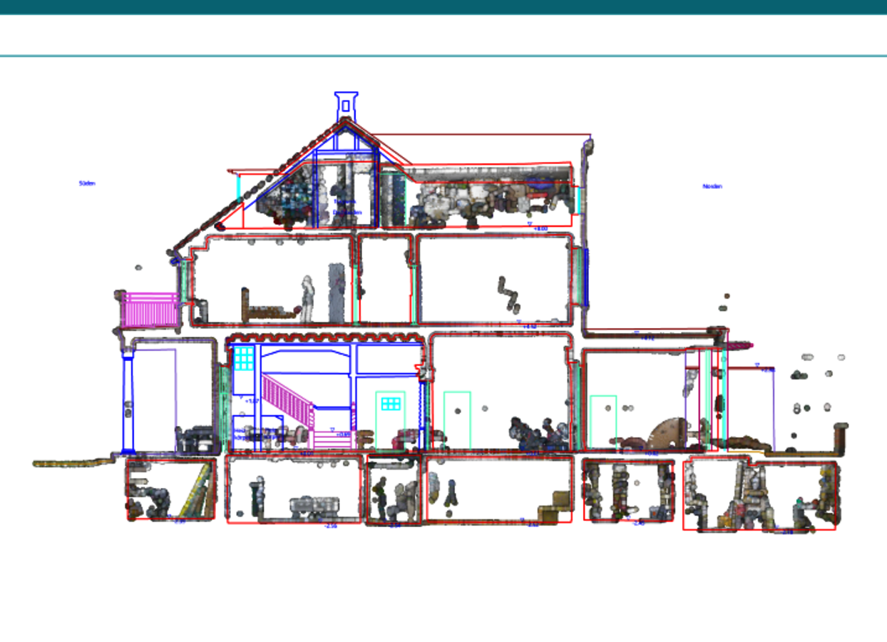 It took the team three days to scan the 150-year-old building with around 350 points of view and a usable living space of 1,000 m². The subsequent registration and cleansing of the point clouds, as well as the evaluation and derivation of geometries from them, took another 3.5 times this time in the office.
