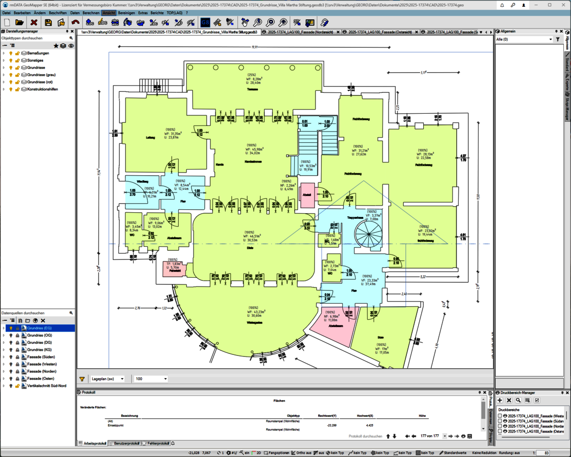 However, the surveying engineer adds that they are becoming faster and more efficient from project to project: "In any case, the learning curve in 3DWorx is very steep and it was exciting to explore all the possibilities in the software for the listed villa." The smooth workflow between the software products is important to Kai Grünhagen. Only in this way can geometries be derived in 3DWorx in the shortest possible time, exported as DWG files and designed and dimensioned in rmDATA GeoMapper.