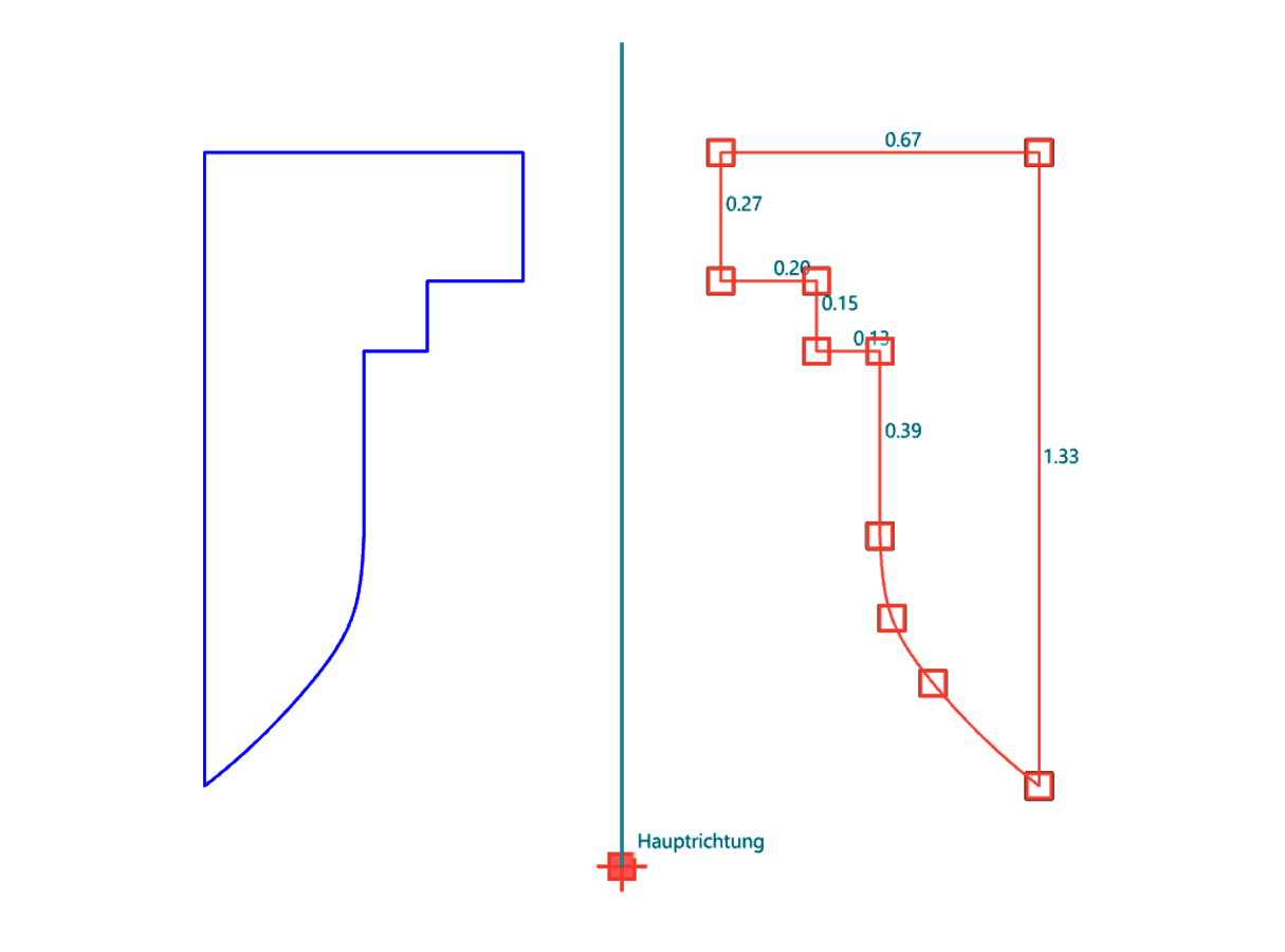 Cette nouvelle fonction crée de nouvelles lignes en décalant des lignes connexes d'une certaine valeur. Indiquez la valeur de la distance ainsi que la direction soit sous forme de valeur scalaire, soit affichez la position souhaitée directement dans le graphique, bien entendu également sur la base du nuage de points. Cette fonction aide également à la représentation idéalisée de l'existant, par exemple pour la construction d'arêtes de murs avec un écart