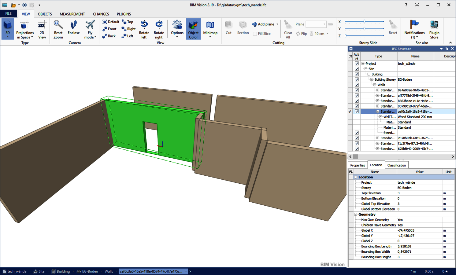 - Créez des ouvertures dans les murs, soutenues par l'intersection automatique de plans, comme les embrasures de fenêtres. Les ouvertures ainsi obtenues peuvent être utilisées dans votre programme BIM pour placer des fenêtres, etc.